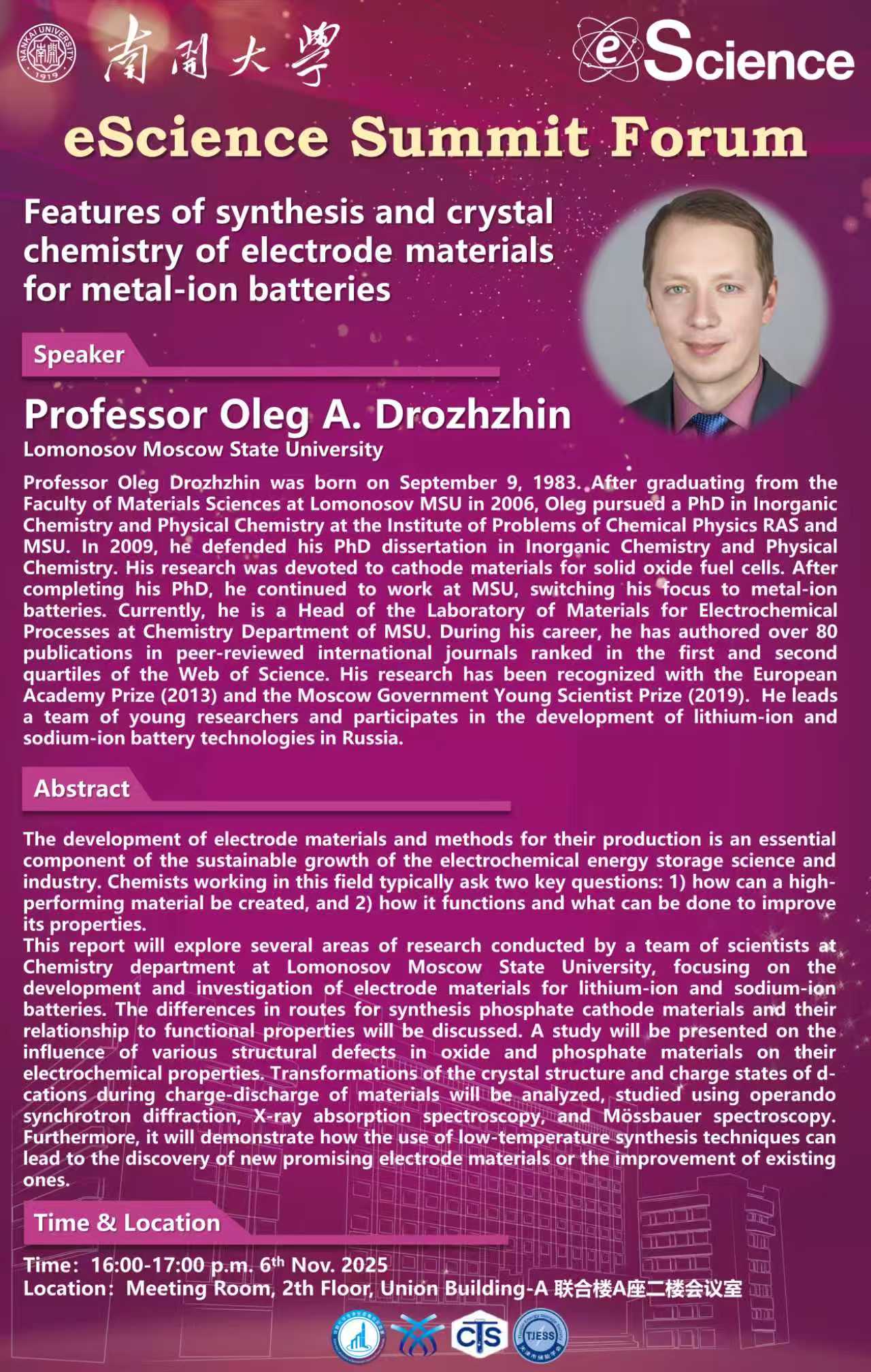 莫斯科国立罗蒙诺索夫大学Oleg A.Drozhzhin教授 :Features of synthesis and crystal chemistry of electrode materials for metal-ion batteries Speaker